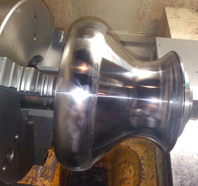 軸承外圓精加工 淬火硬度62°左右,表面余量20-50絲。使用CBN刀片,實(shí)現(xiàn)以車代磨??蛻艉軡M意。